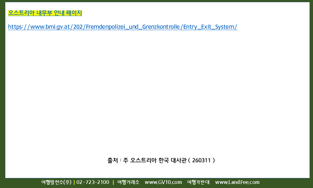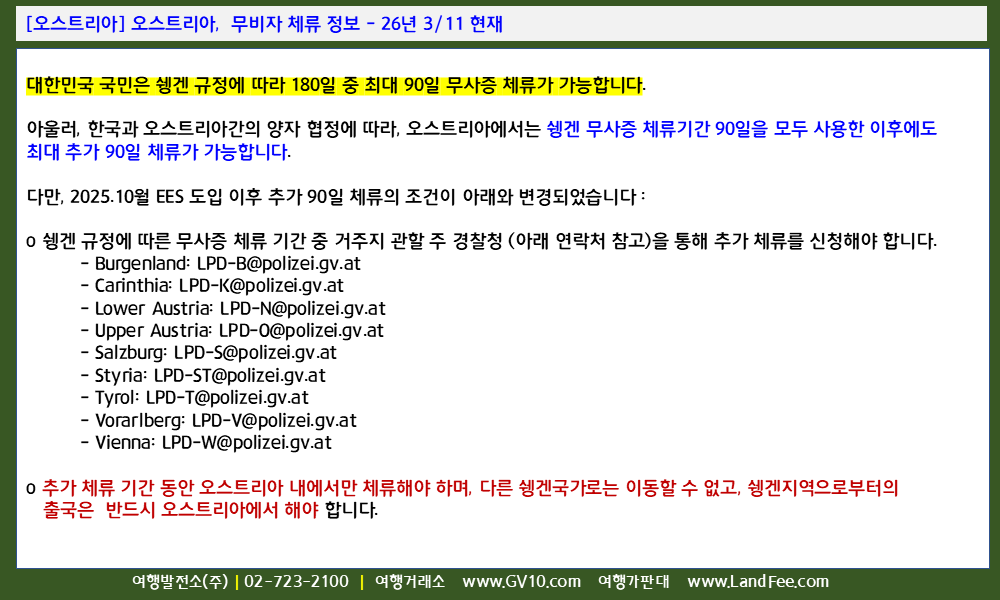 [오스트리아] 오스트리아, 무비자 체류 정보 - 26년 3/11 현재