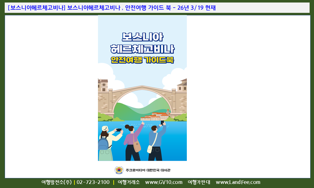 [보스니아헤르체고비나] 보스니아헤르체고비나 , 안전여행 가이드 북 - 26년 3/19 현재
