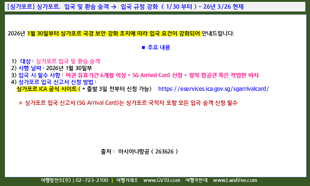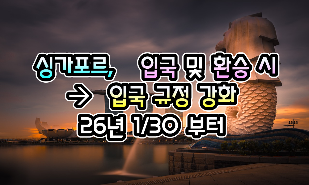 [싱가포르] 싱가포르, 입국 및 환승 승객 -> 입국 규정 강화 ( 1/30 부터 ) - 26년 3/26 현재