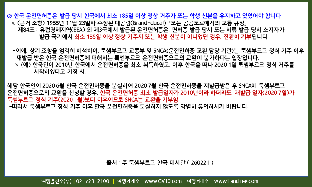 [룩셈부르크] 한국 -> 룩셈부르크, 운전면허증 교환 시 유의사항 - 26년 2/21 현재