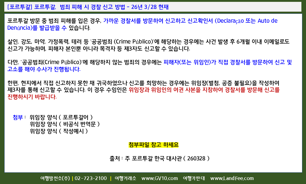 [포르투갈] 포르투갈, 범죄 피해 시 경찰 신고 방법 - 26년 3/28 현재