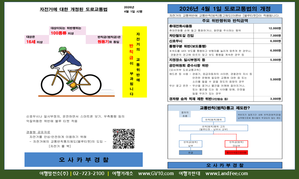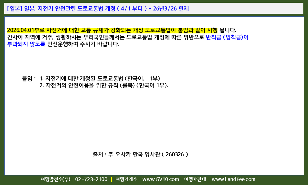 [일본] 일본, 자전거 안전관련 도로교통법 개정 ( 4/1 부터 ) - 26년3/26 현재