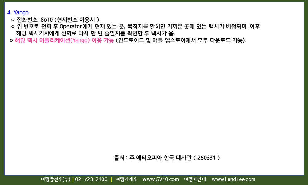 [에티오피아] 에티오피아, 택시 이용 정보 - 26년 3/31 현재