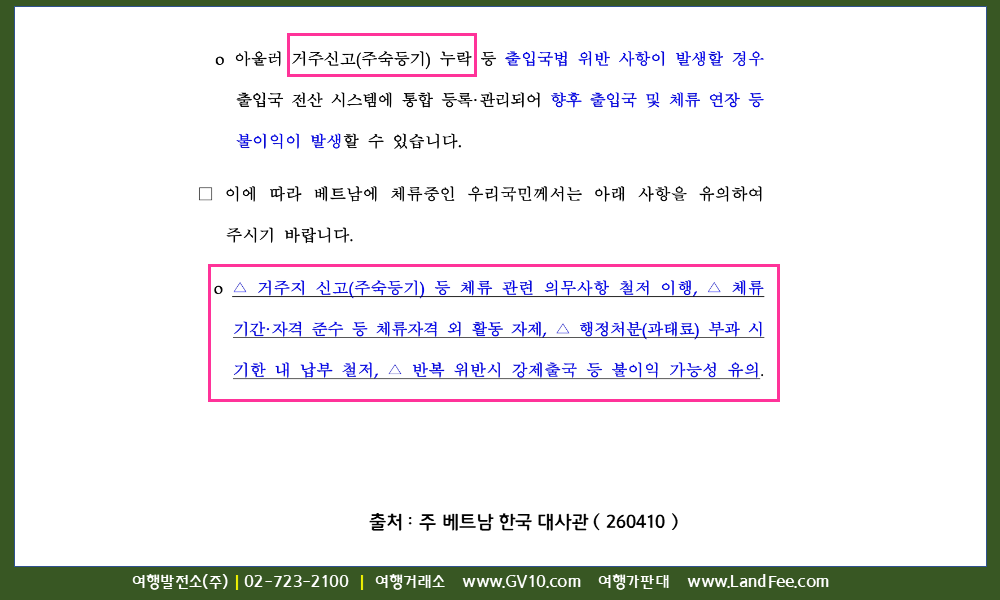 [베트남] 베트남 내 외국인 체류관리 강화 관련 유의 사항 - 26년 4/10 현재