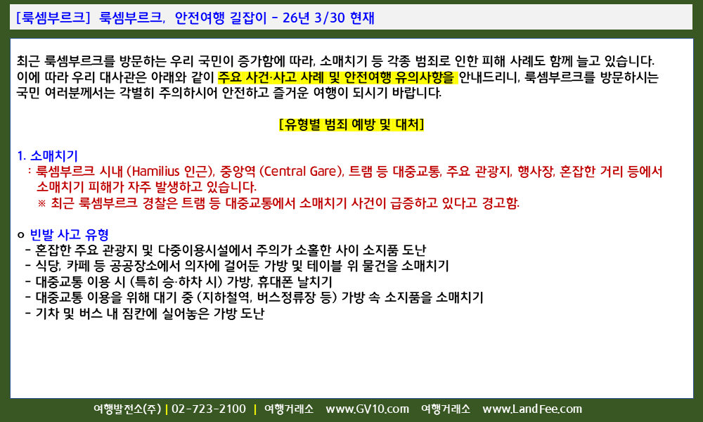 [룩셈부르크] 룩셈부르크, 안전여행 길잡이 - 26년 3/30 현재