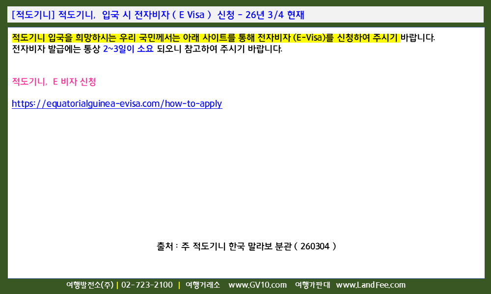 [적도기니] 적도기니, 입국 시 전자비자 ( E Visa ) 신청 - 26년 3/4 현재