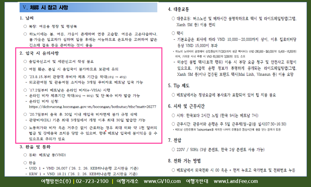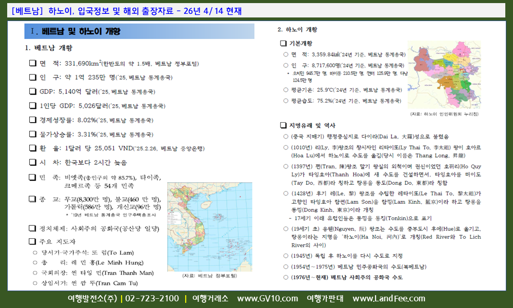[베트남] 하노이, 입국정보 및 해외 출장자료 - 26년 4/14 현재