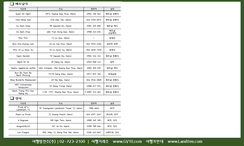 아시아 > 베트남 > 하노이 > 현지정보