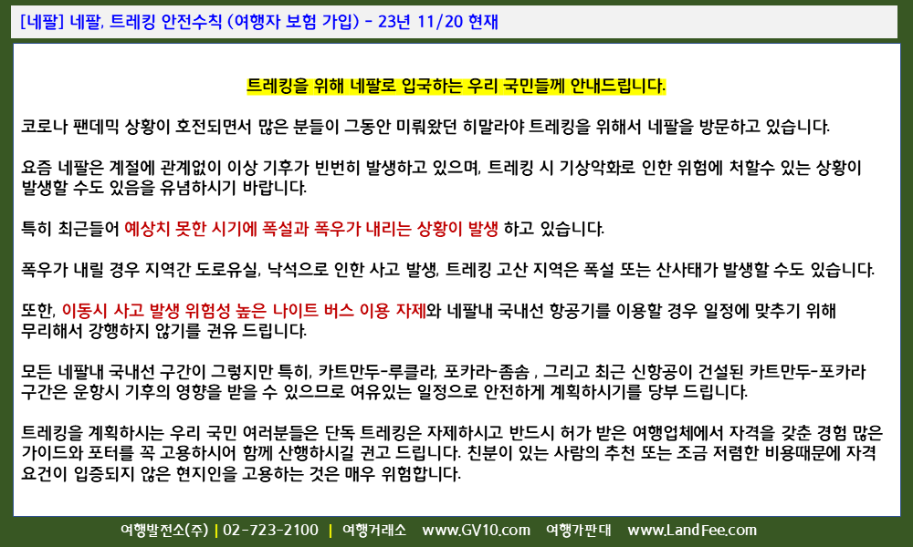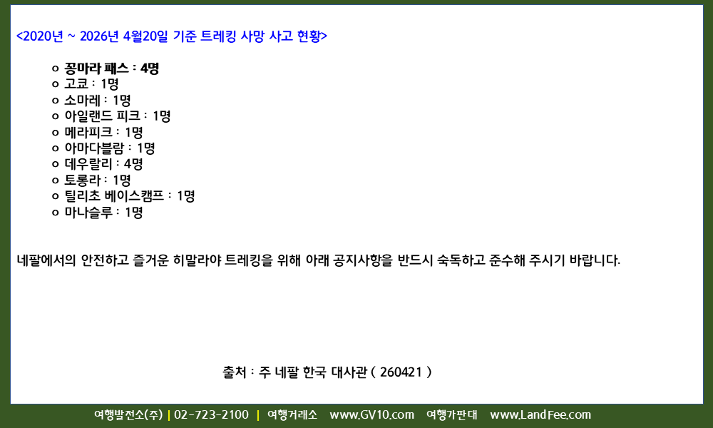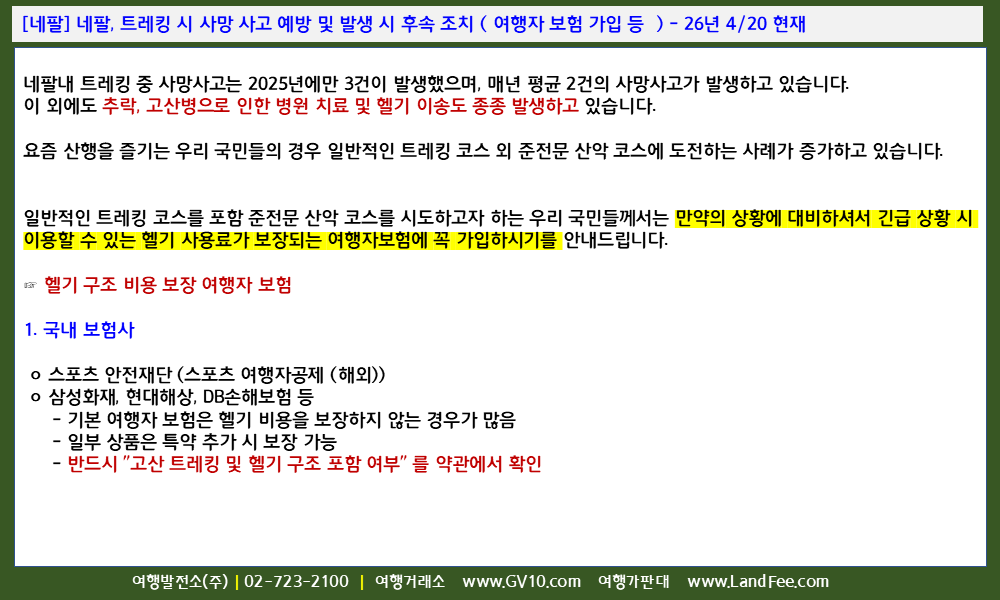 [네팔] 네팔, 트레킹 안전사고 예방 정보 - 25년 4/21 현재